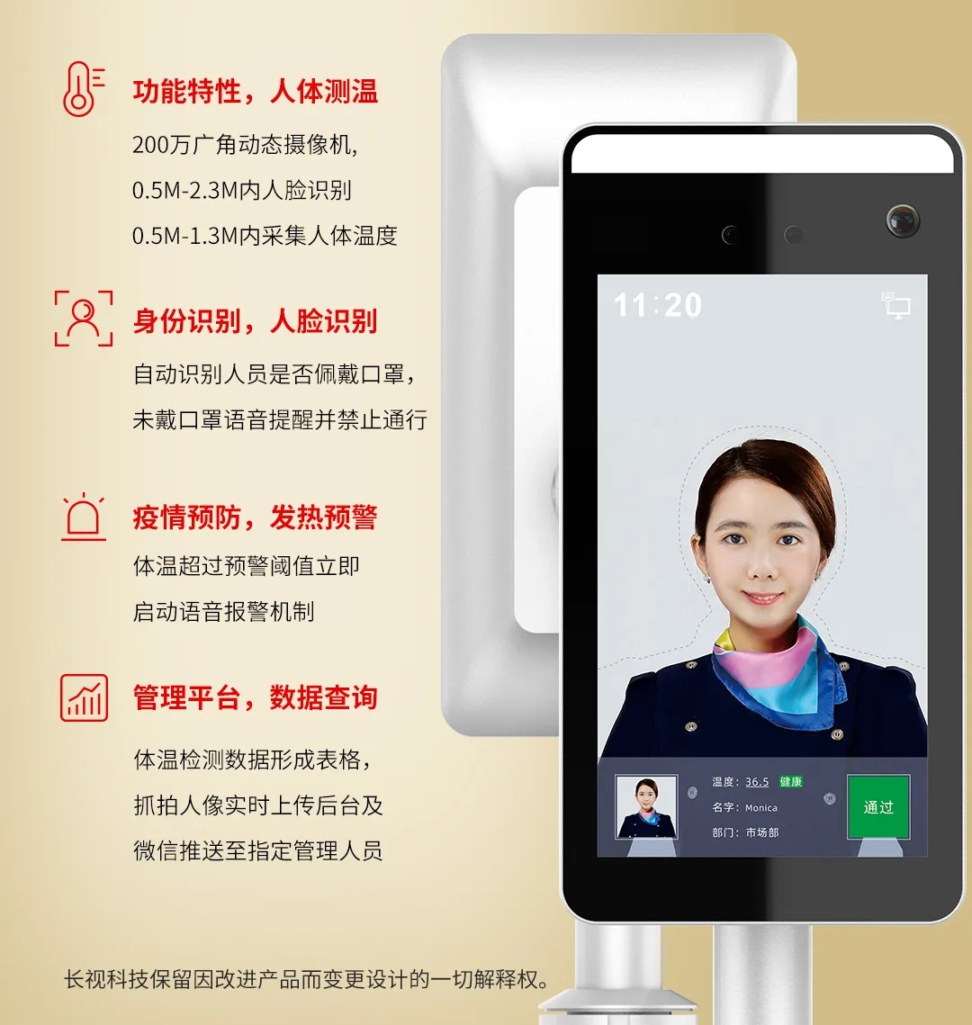 近两三年(nian),AI就(jiu)成(cheng)(cheng)为了安防系统监控摄像头成(cheng)(cheng)长作(zuo)文的(de)(de)(de)(de)重(zhong)心标签效果,但(dan)在(zai)新冠肺(fei)炎(yan)疫情存(cun)在(zai)前,有(you)许多(duo)大公(gong)司的(de)(de)(de)(de)脸部鉴别生(sheng)成(cheng)(cheng)物都不还可(ke)以(yi)加(jia)装温(wen)(wen)度(du)测(ce)试(shi)度(du)板(ban)块(kuai)的(de)(de)(de)(de)。新冠肺(fei)炎(yan)疫情存(cun)在(zai)后(hou),有(you)许多(duo)厂(chang)通(tong)常(chang)适(shi)用的(de)(de)(de)(de)是回报他俩的(de)(de)(de)(de)生(sheng)成(cheng)(cheng)物特殊(shu)添置有(you)一个温(wen)(wen)度(du)测(ce𒁏)试(shi)度(du)板(ban)块(kuai),全体人(ren)员观感上就(jiu)是加(jia)另一个巨丑(chou)独眼(yan)龙同样小脑壳,从(cong)而将(jiang)化合物进级成(cheng)(cheng)年(nian)脸红(hong)外温(wen)(wen)度(du)测(ce)试(shi)机(ji)。与此类比,长视科技有(you)限公(gong)司自强自立科研的(de)(de)(de)(de)AI人(ren)像红(hong)外温(wen)(wen)度(du)测(ce)试(shi🃏)辨识终端门店(dian),则生(sheng)而存(cun)在(zai)了题(ti)干(gan)从(cong)想法方面存(cun)在(zai)的(de)(de)(de)(de)题(ti)干(gan)上风;